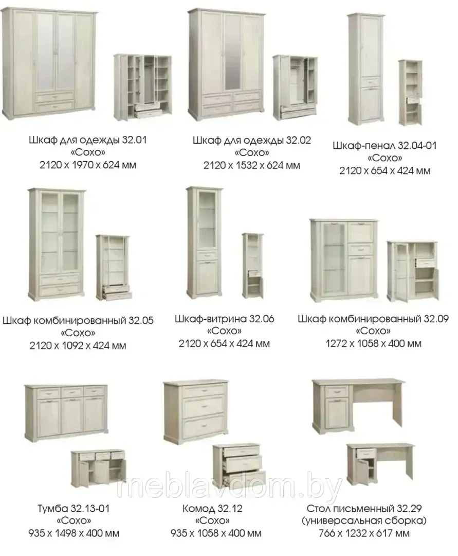 Откройте для себя модульную систему "Сохо" — идеальное решение для создания единого стиля в вашем доме. С помощью разнообразных универсальных и специализированных секций вы сможете организовать пространство в прихожей, спальне и гостиной так, как вам удобно.